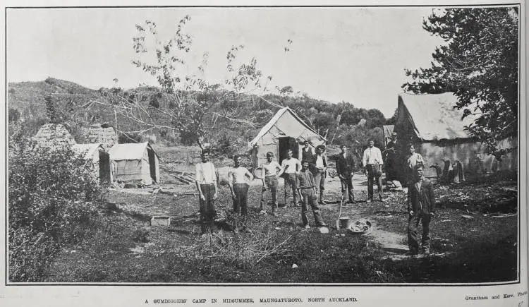 - A GUMDIGGERS CAMP IN MIDSUMMER, MAUNGATUROTO, NORTH AUCKLAND