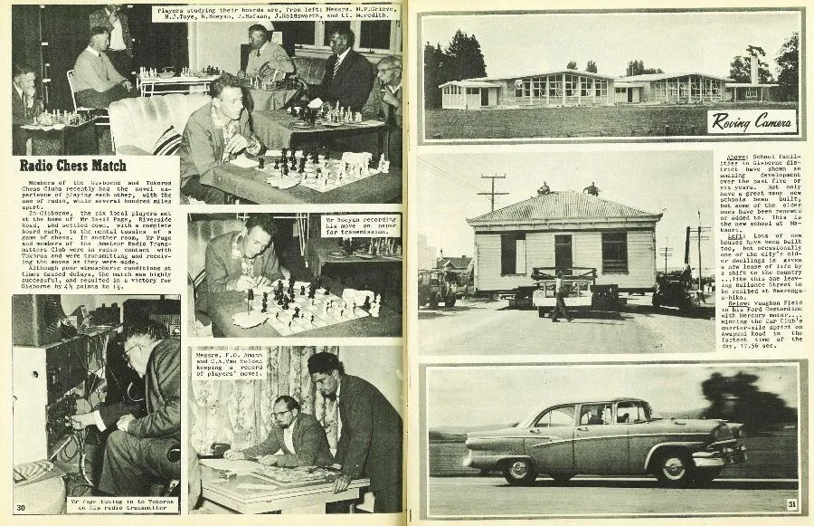 Issue No 94 April 19, 1962 - Members of the Gisborne and Tokoroa Chess Clubs recently had the novel experience of playing each other, with the use of radio, while several hundred miles apart. In Gisborne, the six local players met at the home of Mr Basil Page, Riverside Road, and settled down, with a complete board each, to the mental tussles of a game of chess. In another ...