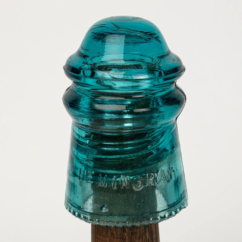 This is a glass number 9 Hemingray telegraph insulator manufactured by the Hemingray Glass Manufacturing Company in America from the 1890's to the 1940s. It was designed, primarily for rural use, to insulate the electrical wires they carry so that the electricity (or telephone calls) does not leak into the pole and into the earth. Glass and ceramic are preferred materials for the manufacture of insulators as they are poor conductors of electricity.