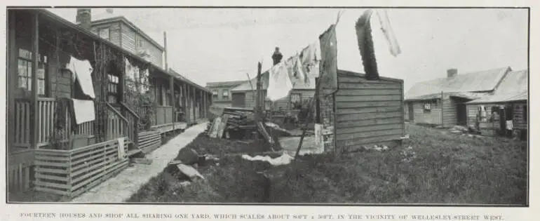 During the late nineteenth century, uncontrolled urban development in Auckland resulted in cramped inner-city houses built along narrow streets and lanes. These small houses were usually serviced by cesspits or insanitary drains and sewers, and often had backyard middens. Even in the early twentieth century, large blocks of such substandard housing remained in the central city not far from Queen Street.